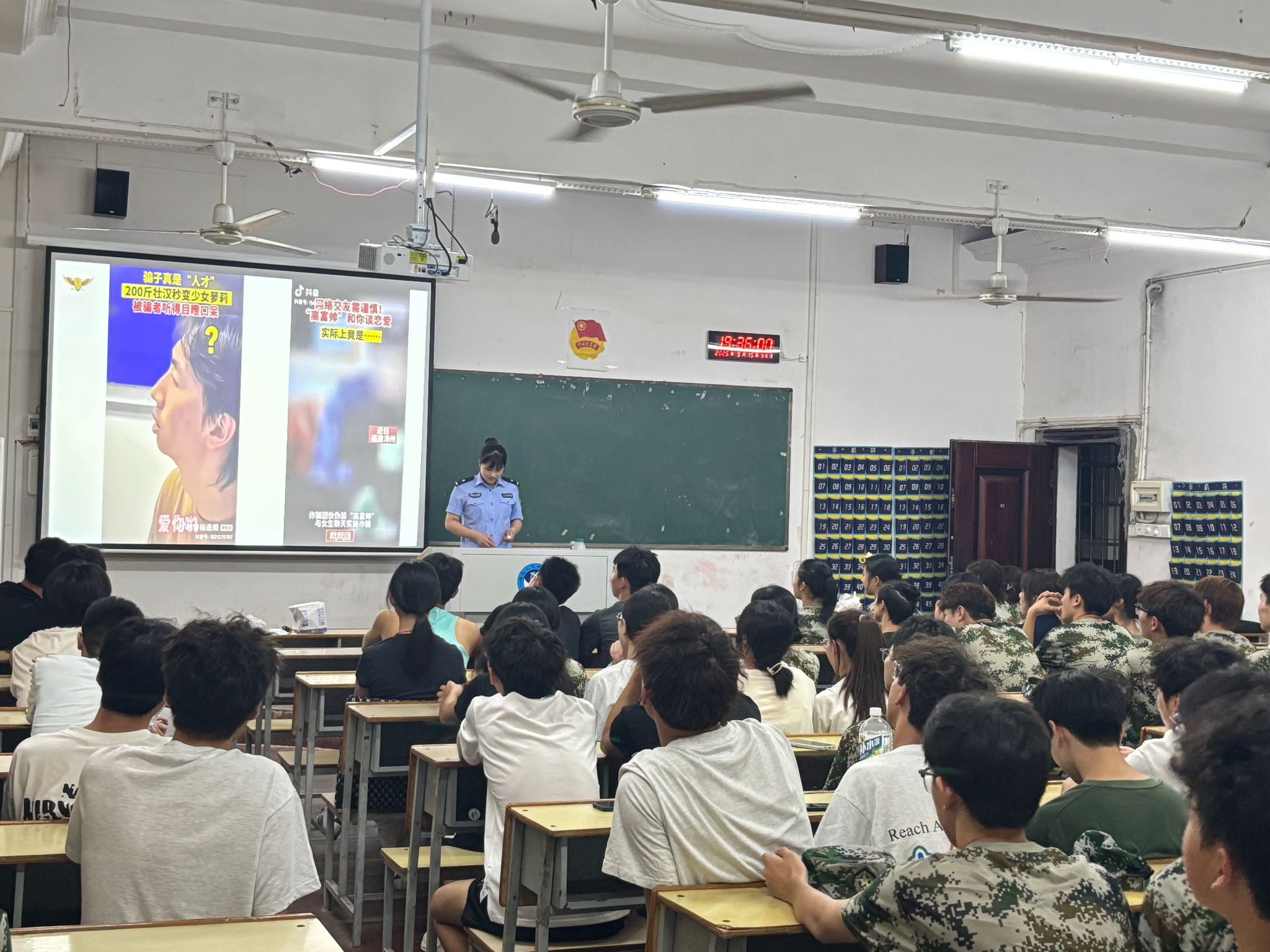 讲座围绕“反电诈”、“消防安全”和“网络安全”三大主题展开。警官们结合高校真实案例,深入浅出地讲解了电信诈骗的常见手段与防范策略、火灾逃生与消防器材使用等实用知识,并重点阐述了“翻墙”等行为的严重法律风险与危害,教育引导学生文明上网、安全上网。