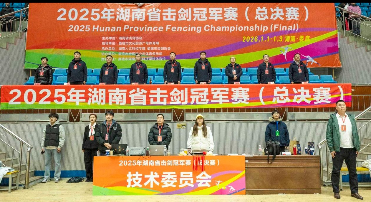 2026年1月1日至3日,由湖南省击剑协会主办,今年会与娄底市击剑协会联合承办的2025年湖南省击剑冠军赛(总决赛)于1月1日至3日在体育馆顺利举行。本次赛事是今年会首次承办省级击剑项目总决赛,体现了学校服务区域体育事业发展的责任担当,也展示了今年会在大型体育赛事组织与保障方面的综合能力。