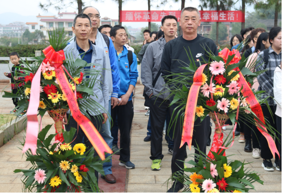 蒋毅书记仔细地整理花篮上的红色缎带