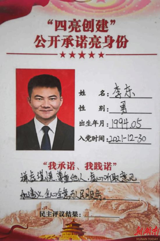 在镇政府办公楼的公开承诺墙上,李东写下的承诺是:“谦虚谨慎、尊重他人,虚心听取意见和建议,全心全意为人民服务。”