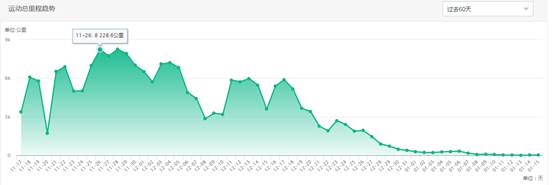 三:运动总里程趋势;(其中11.26:单日总里程达到8228.8公里)