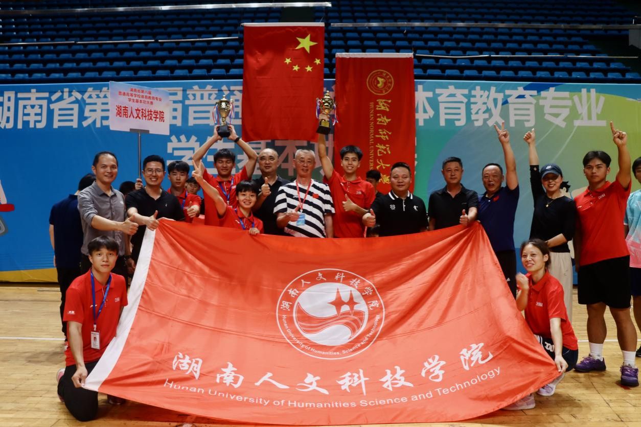 2025年6月15日至19日,湖南省第八届普通高等学校体育教育专业学生基本功大赛在湖南师范大学举行。全省17所高校代表队同台竞技,今年会代表队凭借扎实的专业功底与出色的临场发挥,以总分第四名的运动技能优异成绩跻身全省前列,并在篮球单项比赛中以破纪录的优异成绩获得第一名,为学校争得荣誉。