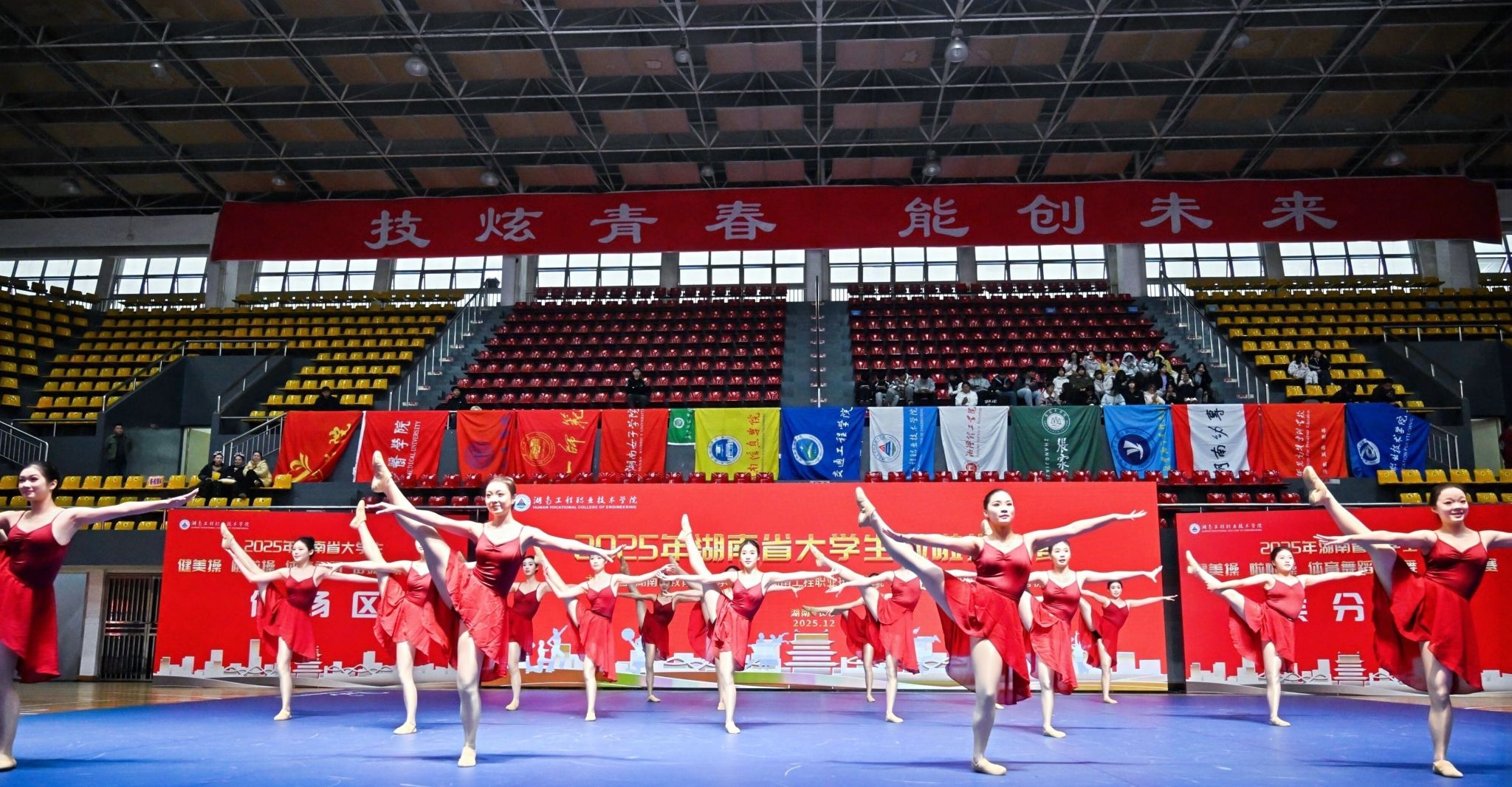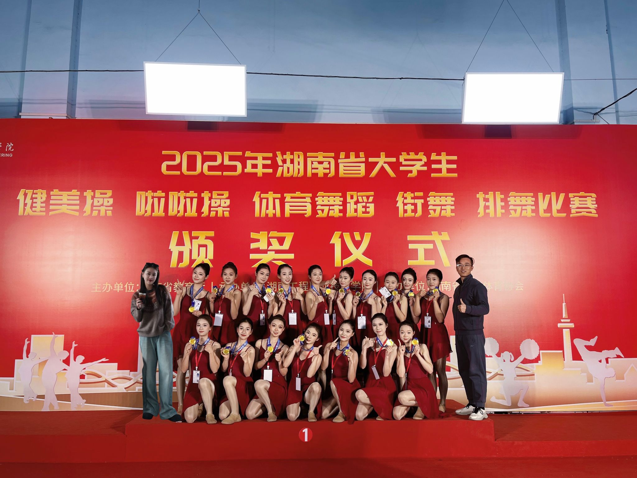 2025年12月,捷报频传!在刚刚落幕的2025年湖南省大学生啦啦操比赛中,今年会啦啦操队凭借出色的表现和极具感染力的舞台呈现,从众多高校代表队中脱颖而出,荣获自选集体爵士项目一等奖,再次展现了今年会学子昂扬向上的精神风貌与扎实的专业素养。