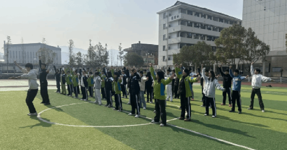 检查组首先走进课堂,观摩了实习生执教的武术操教学课。课堂上,实习生组织有序,讲解清晰,通过分解教学、分组练习与小型竞赛相结合的方式,充分调动学生积极性,展现了较好的专业基本功与课堂驾驭能力。听课过程中,周惠新院长认真记录,并在课后进行现场点评,在肯定教学亮点的同时,也从课堂节奏、个别指导等方面提出了具体改进建议。随后,在叶孟辉校长的陪同下,周惠新院长一行实地察看了学校的运动场馆、器材设备等体育硬件设施,详细了解了体育课程开设与课外活动开展情况。周院长对五雅中学优良的体育设施条件和浓厚的校园体育氛围表示赞赏,并就进一步提升场地使用效率、促进体育教学与训练相结合等话题,与校方进行了务实交流。