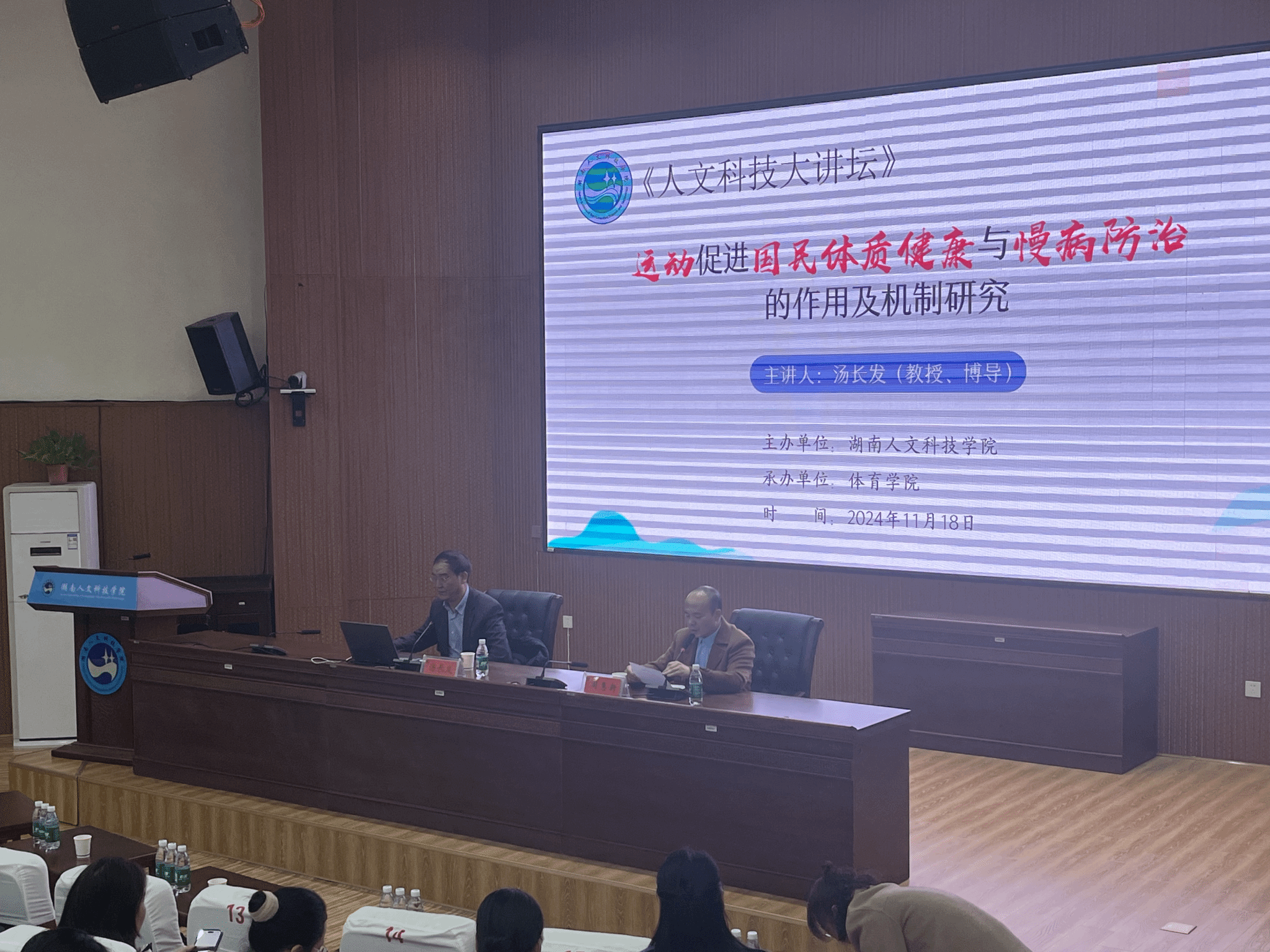 为积极响应国家全民健身战略,推进运动科学在国民体质健康和慢病防治领域的应用与发展,进一步提高我院教师的学术能力,11月18日下午,体育学院特邀湖南师范大学博士生导师汤长发教授在匠成楼报告厅,开展以“运动促进国民体质健康与慢病防治的作用及机制研究”为题的学术讲座。本次讲座由体育学院院长周惠新教授主持,吸引了全院师生踊跃参与,现场气氛热烈。