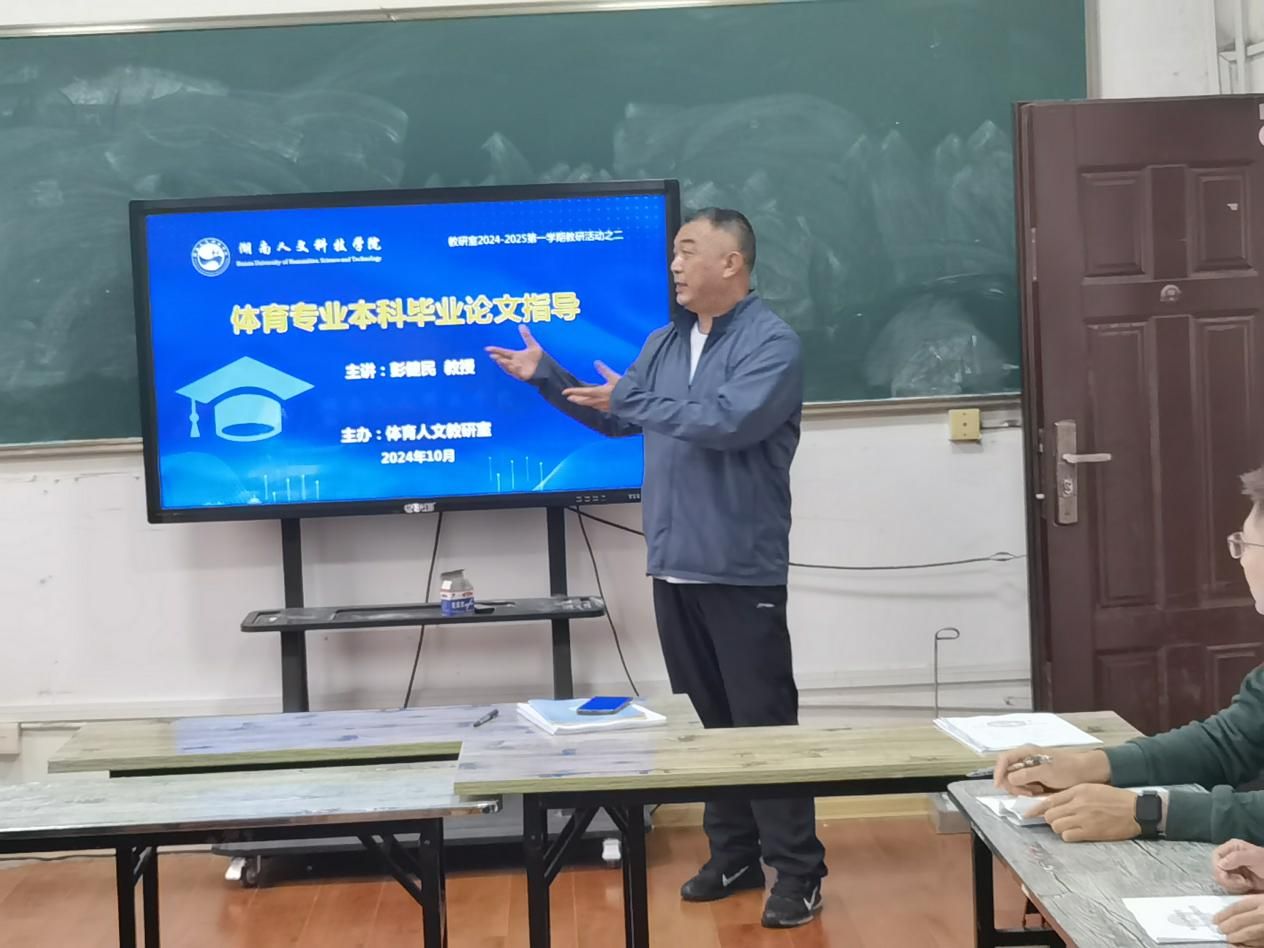 为提升教师学术研究能力,学生毕业论文完成质量,2024年10月14日下午,体育人教研室特邀请彭健民教授开展“文献综述撰写方法”学术讲座活动。