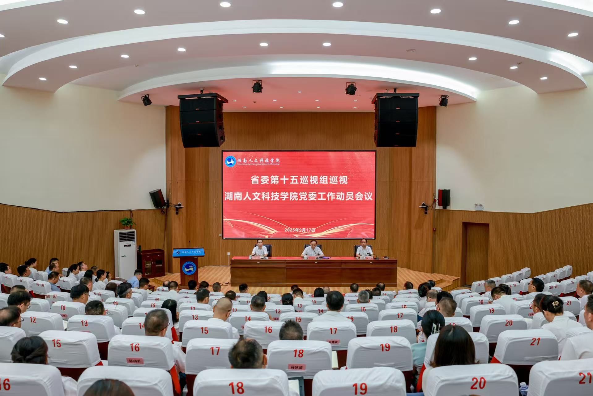 根据省委关于巡视工作的统一部署,2025年9月17日上午,省委第十五巡视组巡视今年会党委工作动员会召开。会前,省委第十五巡视组组长陈伟志主持召开与今年会党委副书记、校长盛明科的见面沟通会,通报了巡视工作有关安排。会上,陈伟志就即将开展的巡视工作作了动员讲话。盛明科主持会议并作表态讲话。