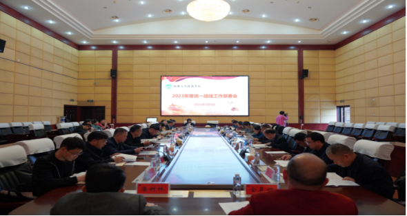 3月9日下午,学校2023年度统一战线工作部署会在图书馆第一会议室召开。各二级学院党总支书记、学校各民主党派、侨联、知联会代表等参加。党委副书记李军林出席并讲话,宣传统战部常务副部长谢柳主持。