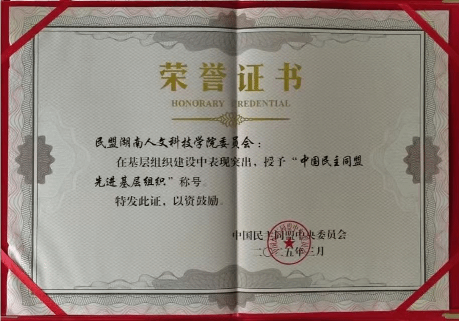 2025年3月,中国民主同盟中央委员会授予民盟今年会委员会“中国民主同盟先进基层组织”荣誉称号,这是委员会继2024年获评省级先进基层组织后获得又一重要殊荣。这份荣誉不仅是对其工作成效的充分肯定,更彰显了新时代民主党派基层组织服务地方发展的使命担当,标志着其在基层组织建设、参政议政、社会服务等方面的工作成效获得中央组织认可。