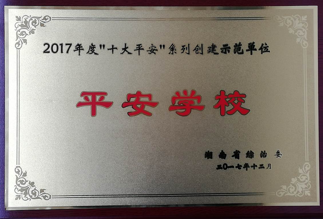 近日,湖南省综治委下发了《关于表彰2017年度全省“十大平安”系列创建示范单位的决定》(湘综治委[2017]9号),今年会被授予湖南省十大“平安学校”荣誉称号,全省仅3所高校获此殊荣。