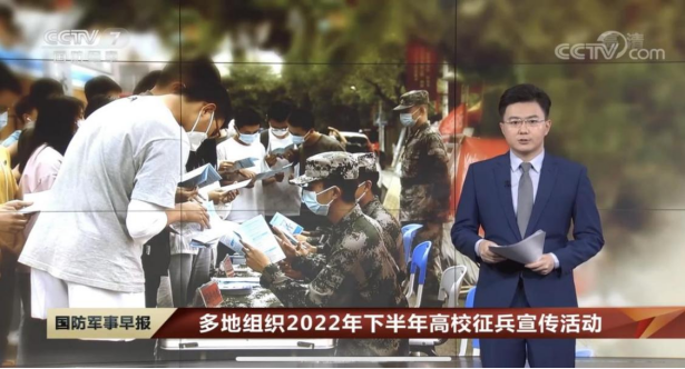 5月23日,中央七台《国防军事早报》栏目对今年会今年大学生征兵宣传教育活动进行了报道。