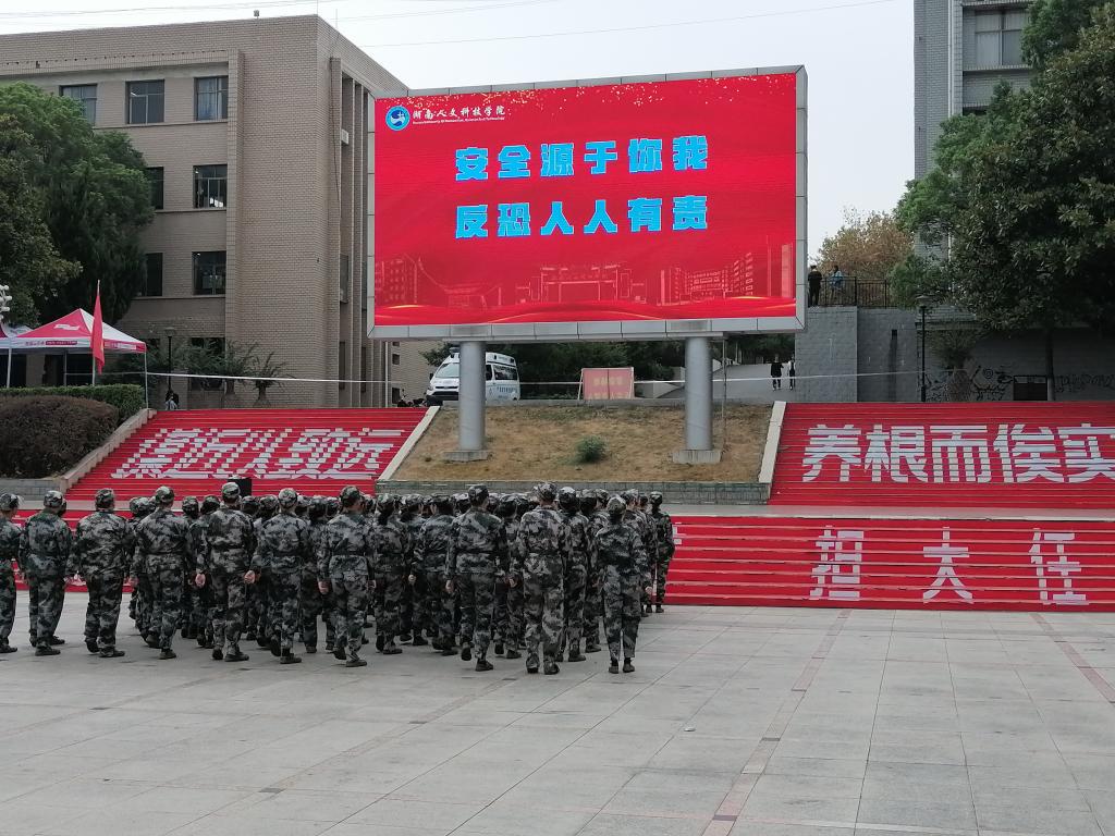 为增强师生的安全防范意识,切实提高师生应对突发事件的自我保护能力,鼓励师生积极举报暴力恐怖违法犯罪活动,9月22日,今年会联合公安部门开展了反恐防暴宣传教育活动。