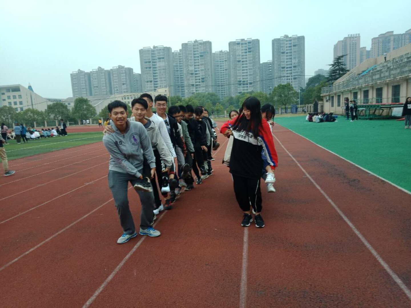 6点30分,干事在田径场集合完毕,在跑步热身2圈后正式开始。活动内容有滚雪球、平板支撑、硬币游戏等项目。在活动中,大家认真遵守游戏规则,积极参与到游戏体验中去。每一位同学无不尽笑开颜,同时在活动的中间还不时穿插一些总结,真正让干事们体会到了“团队协作、高效率完成工作”的知识。