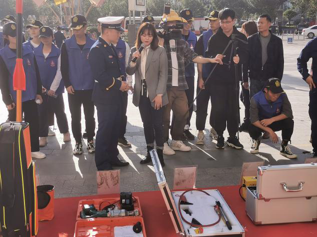 在舞台右边摆放了各种消防器具,并安排专业人员为大家讲解各种器具的使用方法;在舞台左面设立了宣传点,免费分发宣传海报和宣传知识手册,以及与消防相关的游戏比试点。本次活动还设置了两个分会场,以此更好的向全市民众宣传消防安全知识。