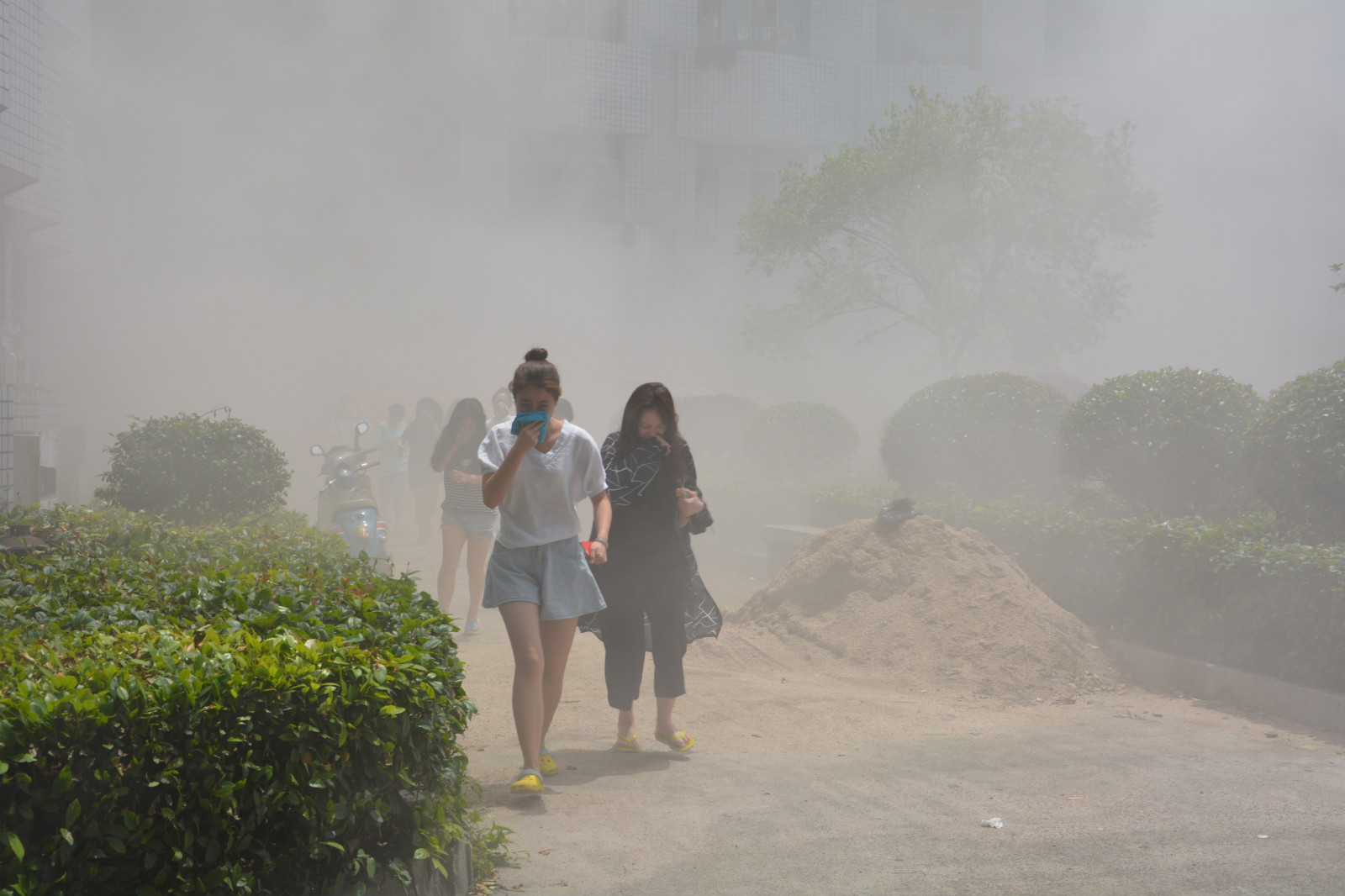 5月17日,学校开展了消防疏散及灭火演练活动,中午1点30分,9栋女生宿舍楼,随着警报声的拉响、烟雾弹的燃放,消防疏散演练正式拉开序幕。在演习过程中,工作人员沉着指挥,同学们有序疏散。短短4分钟,全体宿舍人员安全撤离。应急疏散演练结束后,紧接着又在宇光球场进行灭火演习。保卫处、学工处全体工作人员、学生辅导员、宿舍门卫人员逐个使用灭火器进行灭火,熟练掌握干粉灭火器的使用方法。