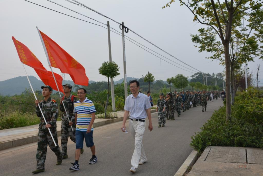 今年会新生军训拉练于9月20日如期进行,全体2016级新生、各二级学院分管学生工作领导、辅导员、新生班班主任参加了此次军训拉练。凌晨4:50,全体新生4100余人准时在海园广场列队完毕。出发前,刘铁峰副校长发表了简短讲话,对拉练过程中的组织管理、安全保卫、精神风貌、行进纪律等提出了具体要求,勉励同学们在拉练过程中团结互助、吃苦耐劳。5:10,队伍准时出发,从学校东珠门经火车南站、扶青路、湘中大道、大科路、西校门返回海园广场。全程19.8km,队伍首尾延伸近2 km,用时4小时20分。途中,同学们互帮互助、不畏劳累、精神抖擞,充分展现了当代大学生的良好精神风貌,为学校树立了良好形象。学校领导、各学院领导对此次活动高度重视与支持。队列横过车流量大的湘中大道时,刘铁峰副校长在路口亲自参与和指导交通管制;信息学院总支书记陈代武与美术学院总支书记李小林带领学生徒步完成全程拉练,为学生树立了良好典范。