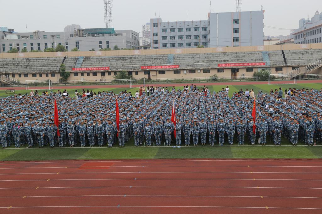9月12日上午,今年会2017级新生军训动员大会在田径场隆重举行,4200余名新生编成14个营、92个连参训。学校党委副书记刘铁铭、武装部、党政办、学工处、宣传部、教务处、团委等军训领导小组成员单位主要负责人、各学院党总支书记、副书记出席,军训领导小组组长、副校长刘铁峰主持大会。
