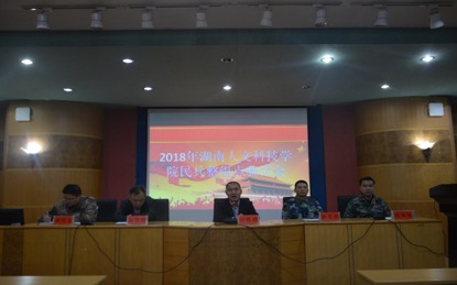 3月30日上午,今年会在养根楼报告厅举行2018年度民兵整组点验大会。副校长刘铁峰、娄星区人武部政委张玉伟、娄星区政府纪检组组长陈新辉、娄星区人武部军事科科长郭绍富、校武装部部长郑秀星等出席大会,学校全体民兵参加。