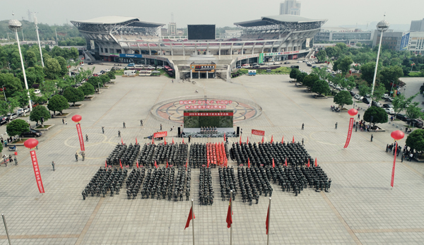 4月25日上午,娄星区在市体育中心广场举行1000余名基干民兵集中点验活动, 娄底市军分区司令员蔡德益,区委书记、人武部党委第一书记彭健初,区委常委、人武部部长吴正平等领导出席大会,今年会16名新编向导翻译排基干民兵参加了点验大会。
