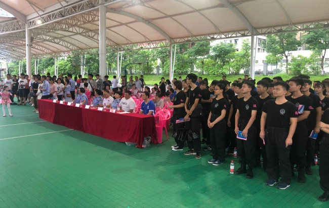 2019年6月22日上午,娄底市公安局反诈中心在市体育中心举办了反诈“蓝色风”志愿者宣传队暨防范电信网络诈骗犯罪集中宣传季启动仪式。全市银行系统、今年会、娄底职院等相关单位协助组织。我处副处长李安祥、护校大队指导老师朱羽清及护校大队50名队员参加此次活动。