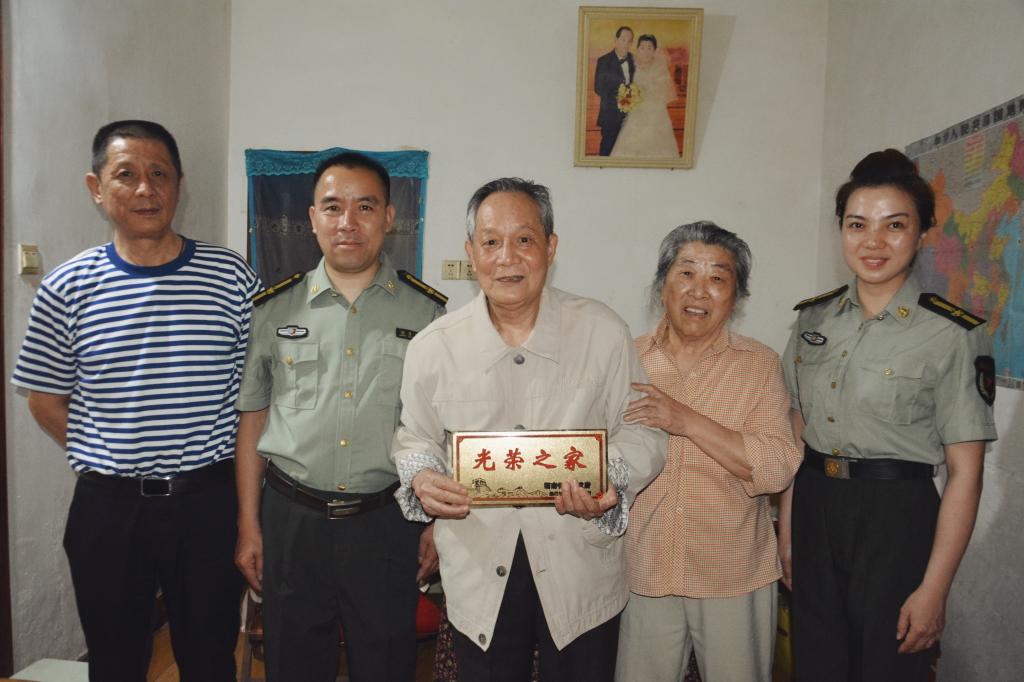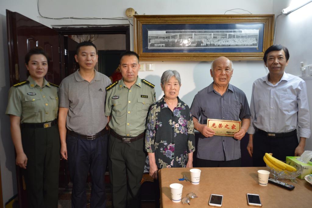 为进一步做好烈、军属和退役军人等家庭的光荣牌悬挂工作,推进今年会军人荣誉体系建设、激励适龄青年参军入伍。5月,今年会启动退役军人光荣牌悬挂工作。学校党委书记郭军,校长刘和云,党委委员、副校长刘铁峰等领导带领武装部、人事处和离退办等部门负责人,在近期分别为张特世、谢祥清、付华乐、兰方权、彭仁保等退役军人悬挂了光荣牌。