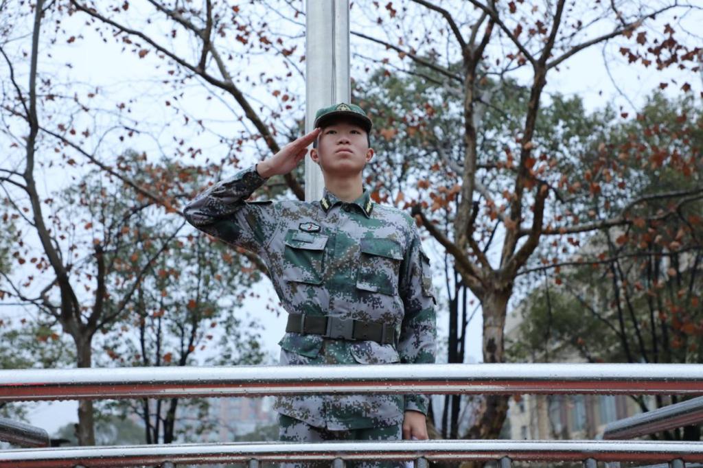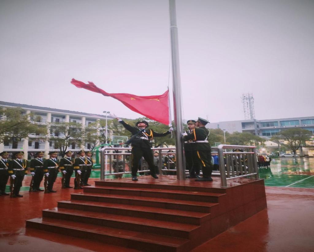 7点整,国旗班队员们肩抗礼宾枪,手护五星红旗,迈着整齐的步伐走向升旗台。在庄严的国歌声中,升旗手振臂一挥,鲜艳的五星红旗徐徐升起。升旗仪式结束后,学员刘文真带领教导大队全体队员齐唱《七子之歌》,表达了全体自训教官对澳门回归的美好祝福。五班班长赵知作国旗下的演讲,倡议队员们要铭记历史,为祖国实现最终统一和繁荣富强贡献力量。