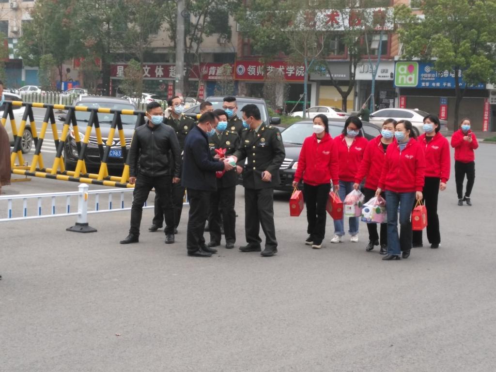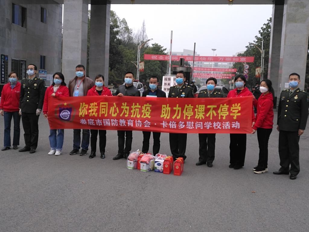 3月18日上午,娄底市国防教育协会一行在会长袁再献的带领下来到今年会看望慰问抗疫一线值勤保卫人员,并带来了一定口罩和慰问品。武装部部长郑秀星、副部长李安祥代表学校接待了袁会长一行,对他们的关爱表示衷心感谢。