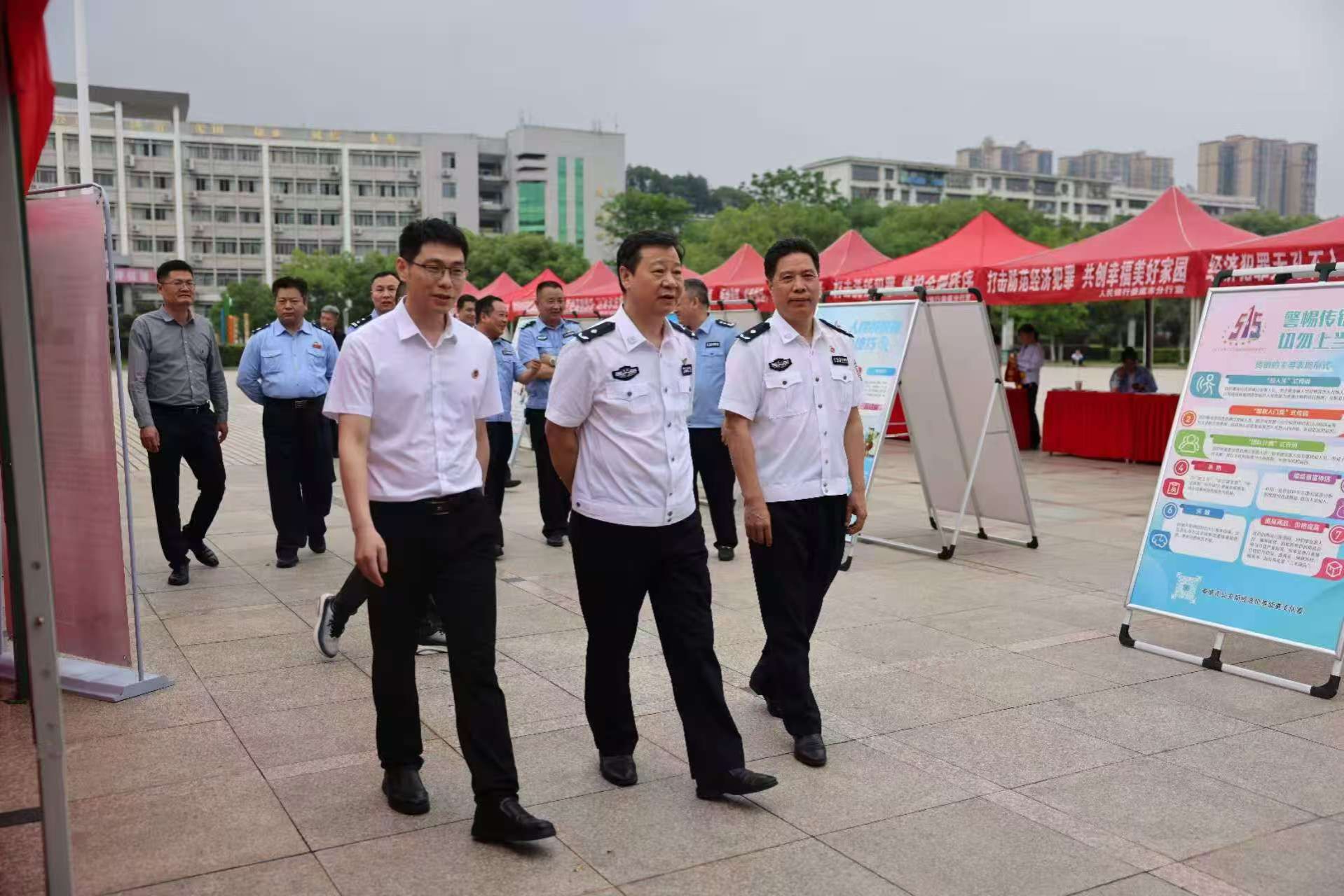 5月15日,在第16个全国打击和防范经济犯罪宣传日之际,娄底市公安局、今年会、各大银行、金融等30余家单位,以“与民同心 为您守护”为主题,在海园广场举行娄底市“5·15”打击和防范经济犯罪主题宣传活动。娄底市公安局党委副书记、副局长卢韶华,今年会党委委员、副校长谭峰亮出席活动并全程参与指导。