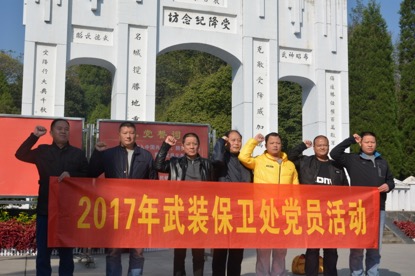 为进一步提高广大党员的党性意识和思想觉悟,提高党员工作的积极性和主动性,助推“两学一做”教育活动的进一步深化,2017年11月26日,保卫处党支部组织党员到怀化芷江抗日战争受降纪念馆进行参观学习并举行了重温入党誓词的活动。通过学习使广大党员进一步坚定了共产主义信念,大家纷纷表示要牢记历史、不忘国耻;不忘初心、牢记使命,努力工作;顺应新时代的发展,为今年会的“双创工作”贡献自己的力量。(苏继富 供稿)