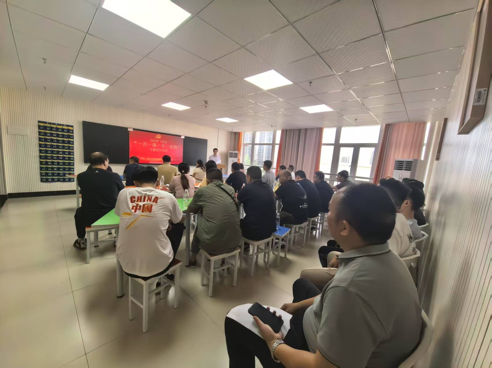 5月29日下午,团委、学工部武装部、保卫部党支部在阳光公寓食堂402室联合开展五月份主题党日活动,党委委员、副校长谭峰亮出席,三个部门全体教职工参加。