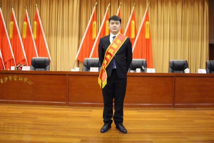 4月27日,长沙市召开庆祝“五一”国际劳动节表彰大会暨“强省会 勇担当 百万职工在行动”启动仪式。会上,作为2021年度全国技术能手,今年会网络工程专业2019届毕业生赵崔俭接受表彰。