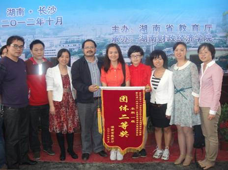 10月21日,由省教育厅主办的湖南省普通高校第十八届普通高校大学生英语演讲比赛暨第三届“外研社杯”全国英语演讲比赛湖南区复赛在湖南财政经济学院落下帷幕。今年会以外语系朱芙蓉副主任为领队,黄敏、蒋成、贺辉为指导老师,向培、张丹、舒坦3名同学组成的代表队,与全省各普通高校96名选手角逐,再获佳绩。来自经济与管理科学系公共事业管理专业的向培同学获得非英语专业组二等奖、经济管理科学系财务管理专业的张丹同学获得非英语专业组三等奖、外语系英语专业舒坦同学获得专业组三等奖,今年会连续3次获团体二等奖。