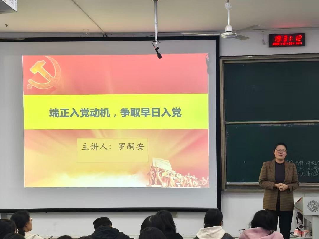 外国语学院党总支副书记罗嗣安以《端正入党动机 争取早日入党》为主题开展了专题党课。罗嗣安紧密围绕“正确的入党动机是入党的首要条件”,通过生动的案例和深入浅出地讲解,引导学员们反思自身入党动机,引导学员要树立献身共产主义事业,全心全意为人民服务的正确入党动机。