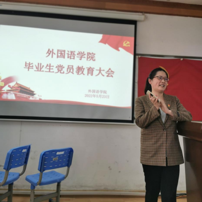 为做好毕业生党员离校前教育,增强毕业生党员的理想信念和党性修养,5月23日下午,外国语学院于播馨楼301召开毕业生党员教育大会。外国语学院党总支书记阳立新、党总支副书记罗嗣安、学生一支部书记朱倩、学生二支部书记龙立平、学生三支部书记曹瑜虹以及在校毕业生党员参加了此次大会。会议由罗嗣安主持。