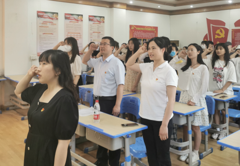 活动伊始,阳立新带领全体毕业生党员重温入党誓词。面对着鲜红的党旗,全体党员高举右臂,庄严宣誓,重温自己对党虔诚的誓言,再次表达了为党的事业奋斗终身的决心。