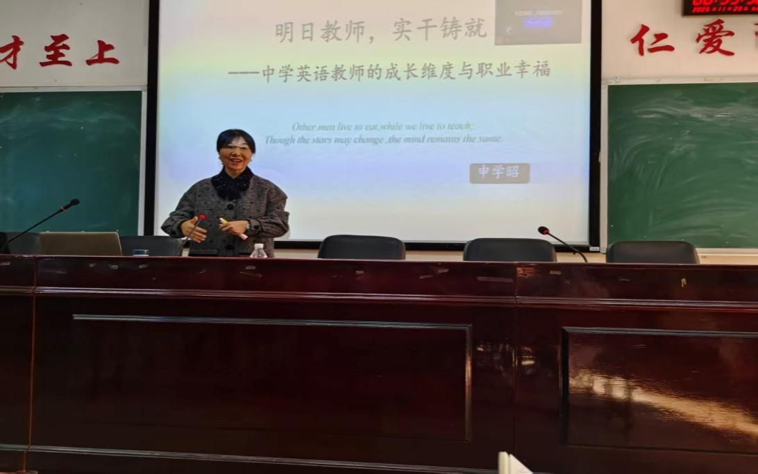 11月29日上午,新化一中正高级教师、娄底高中英语名师工作室主持人申学昭,以“明日教师,实干铸就”为主题,在讲座中生动阐述了中学英语教师的成长维度与职业幸福。