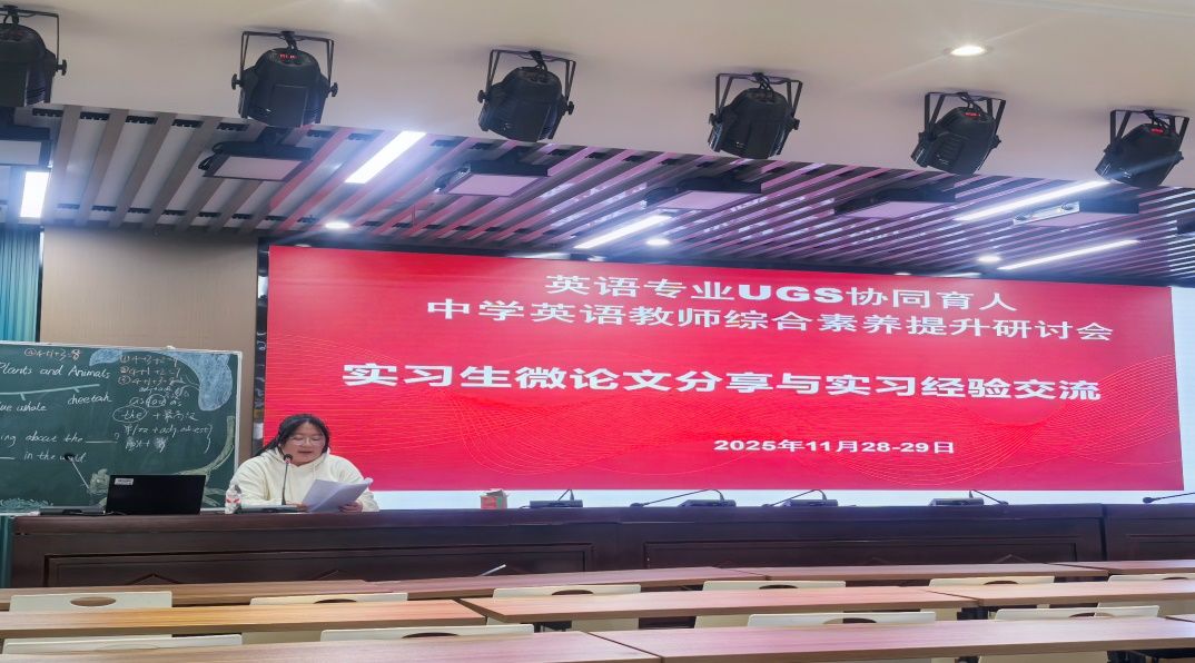 活动结束时,举行了实习生优秀微论文颁奖仪式。刘晓东副院长主持闭幕式,他强调本次研修活动主题鲜明、内容丰富多样、形式新颖多变,涵盖了专家讲座、名师课堂、实习生教学展示、经验交流及微论文交流等多个精彩环节。UGS协同育人研修活动不仅为师范生打造了宝贵的学习与交流平台,更深入推动了高校、政府与中学在英语教师培养上的协同创新,为培养高素质、专业化中学英语教师队伍注入了强劲新动力。