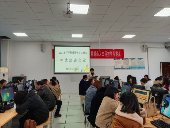 2021年12月21日下午,外国语学院全体教职工在匠成楼309室进行期末考试工作培训会议。会议由卿逸豪副院长主持,会议主旨是“抓考风,促学风”。主要内容如下: