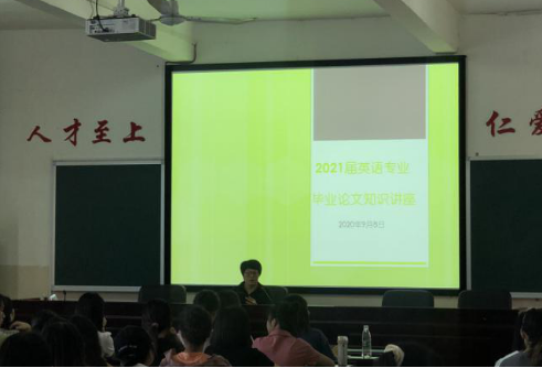 2020年9月8日和9月9日上午,外国语学院在播馨楼406举办了“2021届英语、商务英语专业毕业论文知识讲座”,讲座由副院长卿逸豪主讲,外国语学院英语、商务英语专业2017级全体学生参加。
