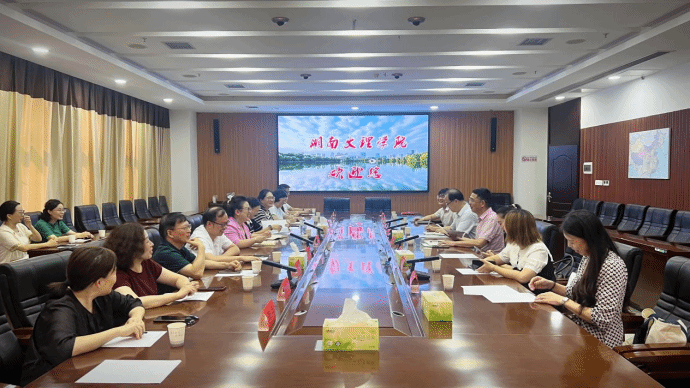 为促进高校外语教育领域的交流与合作,7 月 6 日,外国语学院院长张点、党总支书记李霞率队前往湖南文理学院外国语学院开展考察交流。在逸夫楼305室,湖南文理学院外国语学院党委书记陈晚清、院长刘锋等院领导及全体系主任与外国语学院学科专业带头人、教研室主任、教工党支部书记及各专业骨干教师代表座谈交流。