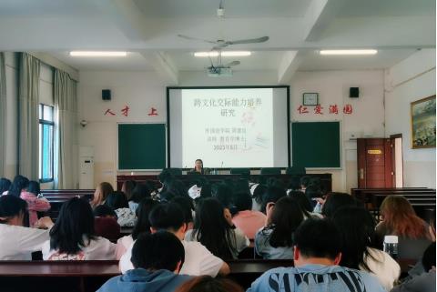 2023年5月12日下午,外国语学院在读博士周建良老师在播馨楼406举行了“跨文化交际能力培养研究”学术讲座, 英语专业2022级的部分学生参与此次活动,此次讲座旨在培养大学生的跨文化交际能力,讲座成功举行且十分精彩。