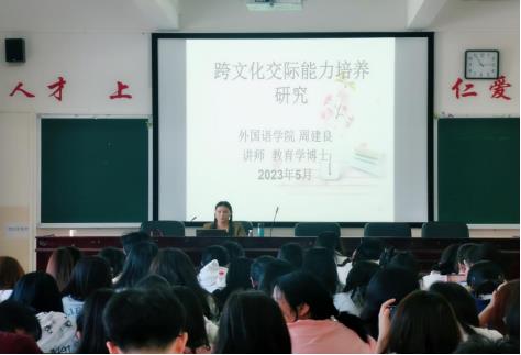 在报告会上,周建良老师精彩地讲述了跨文化交际能力的内涵,国外对跨文化交际能力的研究,跨文化交际能力在中国的发展以及跨文化交际能力培养的方法与途径。