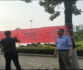 活动开展前期,心理部组织各班同学绘制完成了心理漫画及心理板报的制作,并于当天陈列在播馨楼大厅及前坪中。活动开展时,心理部成员组织了全体同学进行“与阳光作伴,为心灵导航”横幅签名活动,同时让同学们了解了“5.25"的由来以及普及了相关的心理知识,让同学们认识到心理健康的重要性,学会关爱自己,关爱他人。当天活动开展顺利,同学们积极参与,申忠明书记和刘莉副书记以及辅导员老师也热情参与了横幅签名活动。