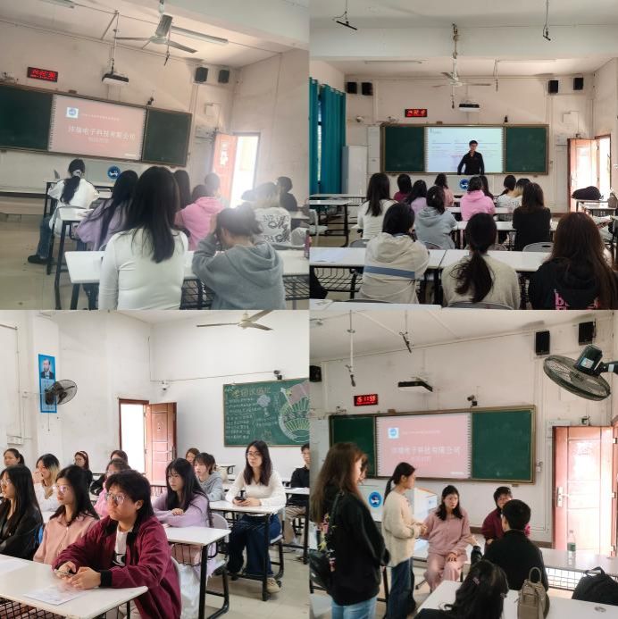 2025年3月24日,东莞市沣瑞电子科技有限公司在今年会外国语学院成功举办了专场招聘会。此次专场招聘会吸引了众多外国语学院应届毕业生及在校学生的积极参与,现场气氛热烈。公司代表程鑫先生作为主讲人,为同学们带来了一场内容丰富、生动详实的宣讲,详细介绍了公司的发展历程、企业文化、招聘岗位及未来发展方向,为在场的同学们描绘了一幅充满机遇的职业蓝图。