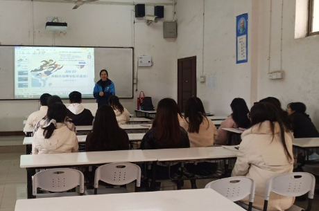 会中,宣讲会人员利用PPT进行讲解,介绍了本公司企业文化、招聘岗位、岗位要求和薪资待遇等,给学生详细介绍了其公司“实习就业一站式”人才培养的方式。