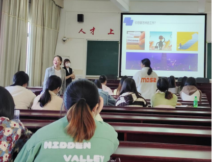 在交流环节,金翅膀集团的老师们表示非常欢迎人文学子加入金翅膀,并就相关岗位能力、职业技能和发展前景等问题为同学们答疑解惑。随后,现场组织了笔试测试。