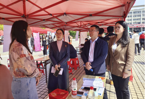 4月26日,今年会2023届毕业生春季双选会在海园广场如期举行,279家用人单位提供7000多岗位。外国语学院积极组织毕业生参加了本次招聘会,为毕业生和企业搭建桥梁,外国语学院党总支书记阳立新、院长胡瑾、副院长卿逸豪、党总支副书记罗嗣安以及全体辅导员到场进行指导。