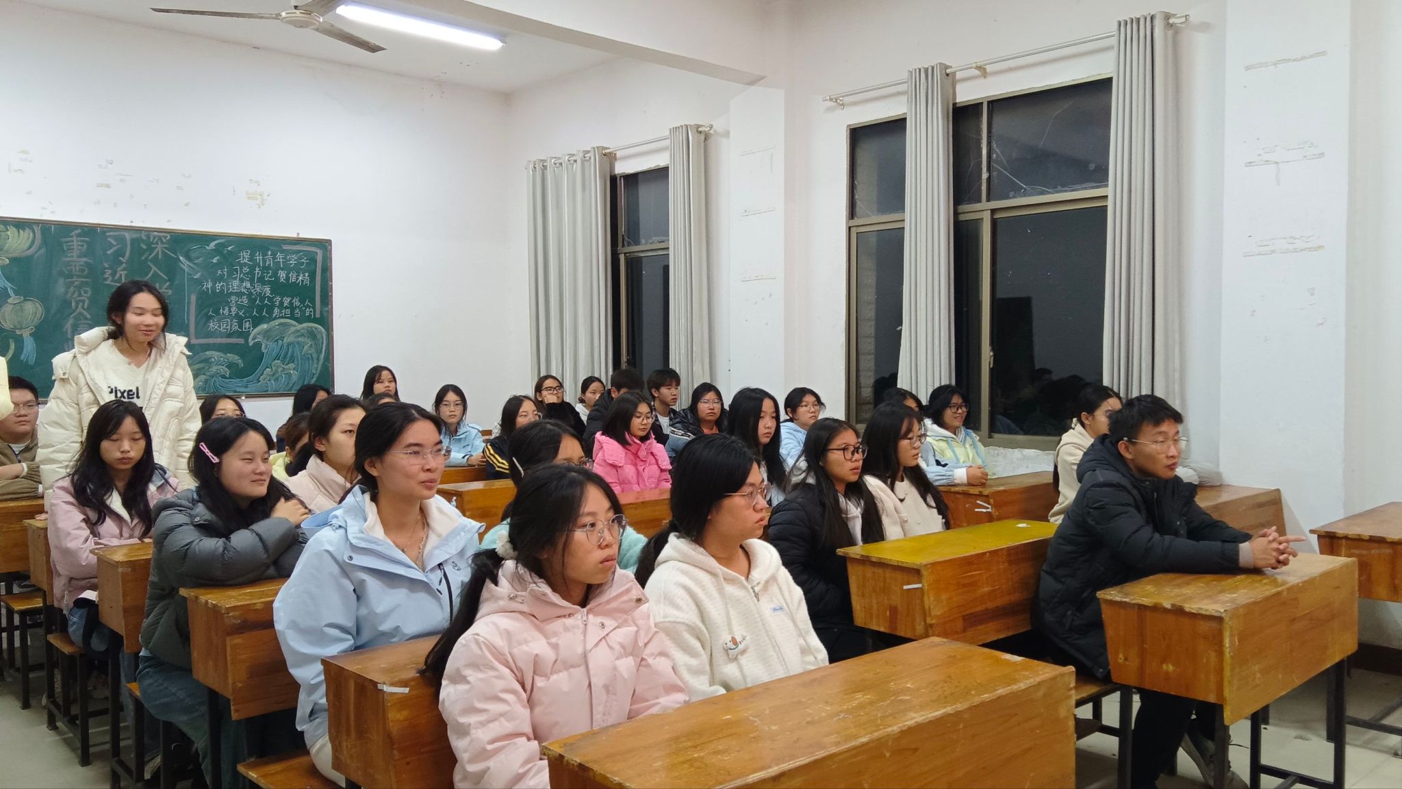 为引导青年学生深刻领会习近平总书记重要贺信精神的核心要义,外国语学院各团支部于12月17日晚在播馨楼开展了"深入学习习近平总书记重要贺信精神"主题团课。