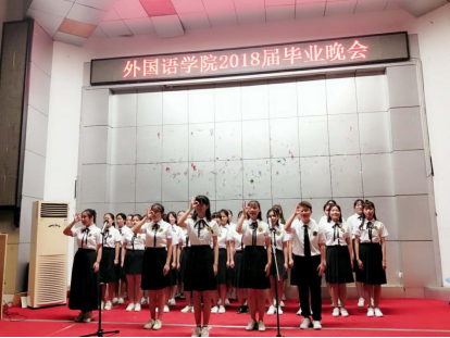 2018年6月6日晚,外国语学院在匠成楼报告厅举办了“青春绽放 梦想起航”2018届毕业晚会。外国语学院全体院领导和部分教师出席了本次活动。