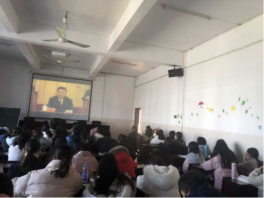师生们认真观看,细心做笔记。40年的发展,中国人民的生活实整体向小康转变;中国社会开放、富强、文明和充满活力;经济实现了持续快速增长,综合国力进一步提高。老师们集中学习讨论会议内容,领会会议精神。同学们感受到祖国的强大。大会激发了师生们强烈的民主自豪感,使命感,激励着我们奋发向上。
